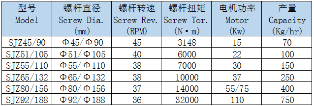SJZ系列錐形雙螺桿擠出機具有塑化混煉均勻、產(chǎn)量高、質(zhì)量穩(wěn)定、適應(yīng)范圍廣、使用壽命長、PVC粉料直接成型等特點。配以相應(yīng)的成型機頭模具和輔機,可將各種熱塑性塑料特別是硬聚氯乙烯粉料,直接擠出成管、板、片、棒、膜及異型材等塑料制品,也可完成對各種塑料的改性及粉料造粒過程。